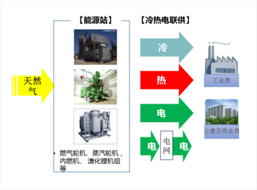 | 基本應(yīng)用 冷熱電三聯(lián)供是分布式能源的一種,具有節(jié)約能源、改善環(huán)境,增加電力供應(yīng)等 綜合效益,是城市治理大氣污染和提高能源綜合利用率的必要手段之一,符合國 家可持續(xù)發(fā)展戰(zhàn)略。主要為大型商場、酒店、學(xué)校、寫字樓及住宅供冷及供熱。 | 基本原理 以天然氣為主要燃料帶動發(fā)電機運行,產(chǎn)生的電力供應(yīng)用戶的電力需求,系統(tǒng)發(fā) 電后排出的余熱通過余熱回收利用設(shè)備(余熱鍋爐或者余熱直燃機等)向用戶供熱、 供冷。達(dá)到冷-熱-電需求的一個能源供應(yīng)系統(tǒng),三聯(lián)供使得燃?xì)獾臒崮鼙怀浞掷?/span> 用,大大提高了能源的綜合利用功效。